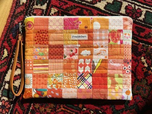 48 fabric scraps measuring no more than 2", feature exterior backing fabric (eg, linen, liberty, repurposed textiles), fusible fleece or scrap of light cotton wadding, light woven interfacing, Metal or other 10" (25cm) zipper. Zipper pull and Label optional.