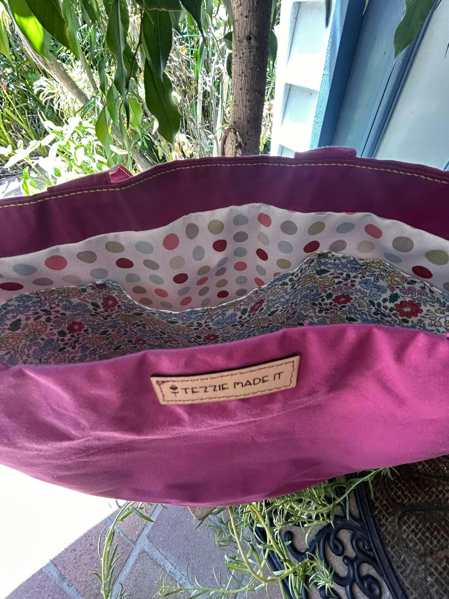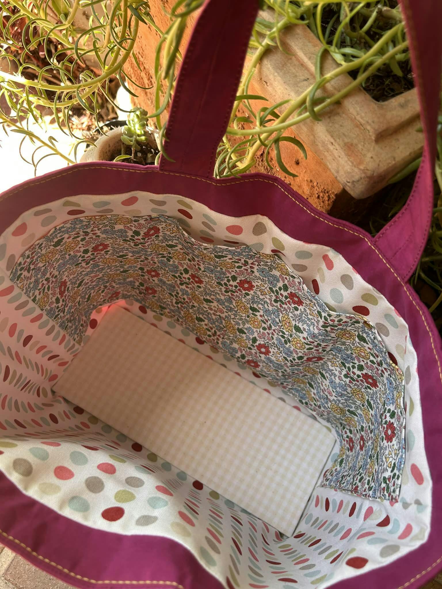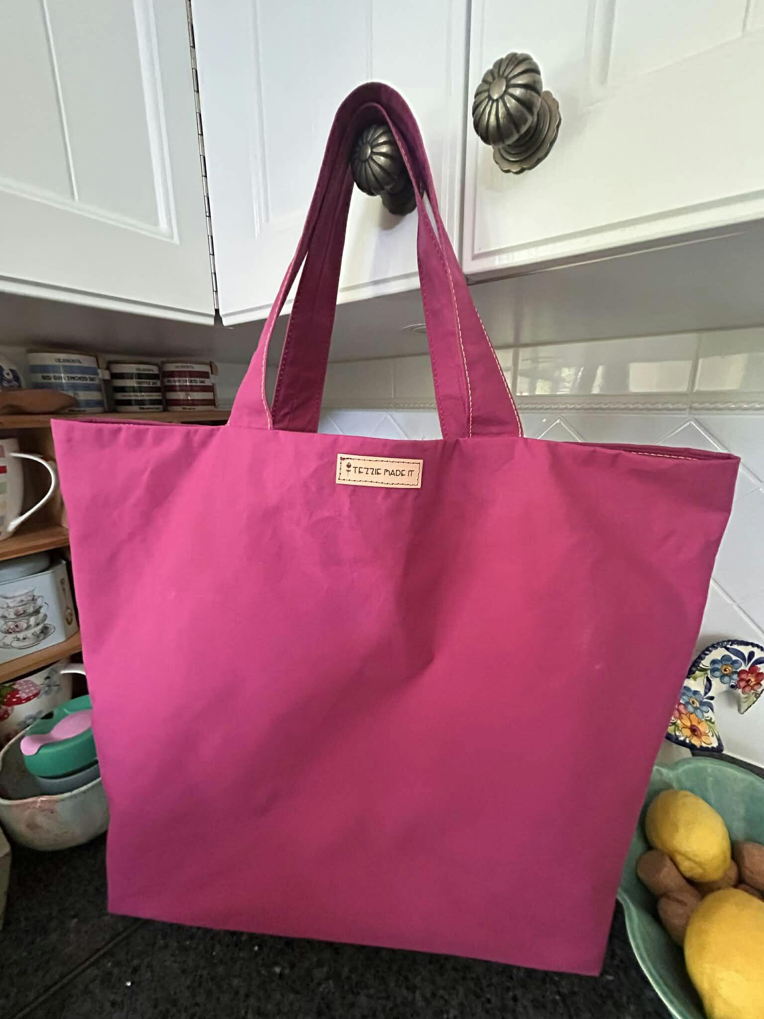 A vibrant magenta pink. The finish is drier and crisper than our other oilskins with a matte appearance. Unlike normal oilskin there would be no oil transfer, so you don't need to line your garment or bag.