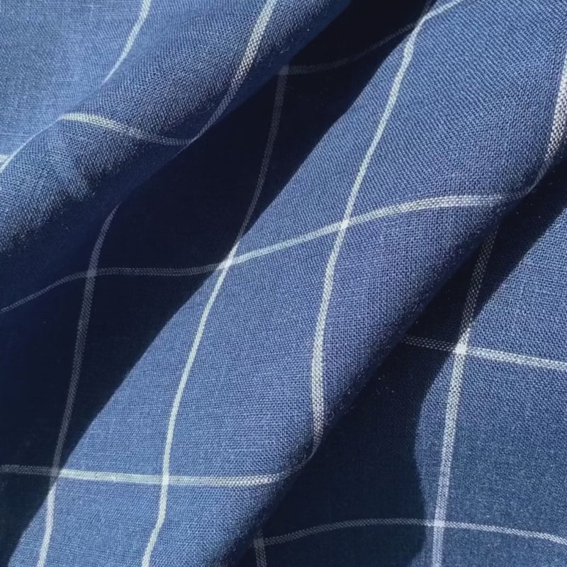 This beautiful denim navy yarn dyed midweight pure linen is woven with a classic 5cm white grid. Imagine this as two piece set or team it with sparkling white, apple green, orange, mustard or red for a striking contrast. Ideal for all your new spring and summer makes including dresses, tops, skirts, pants and playful jumpsuits.